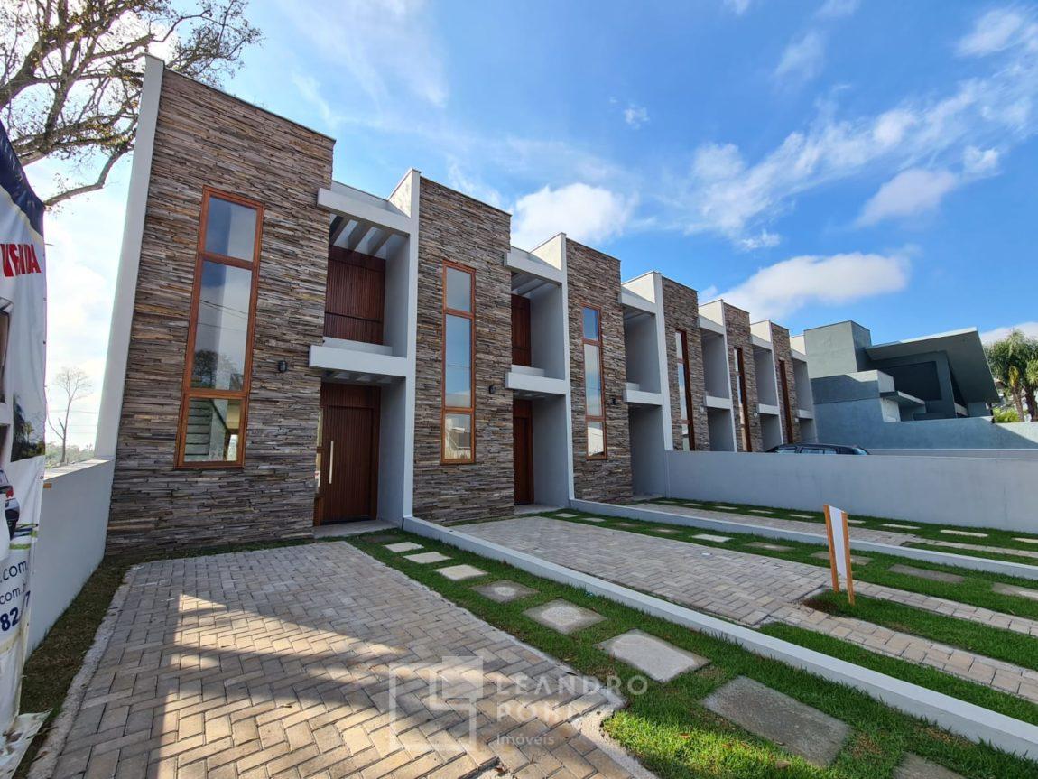 Sobrado pronto para morar, 2 suítes, com acabamento diferenciado, fachada em pedra natural, amplo pátio nos fundos de 40 m² ( 4x10), bancadas em pedra natural (banheiros e lavabo), ripado de madeira na fachada integrado as esquadrias, piso porcelanato, churrasqueira, lavabo,
