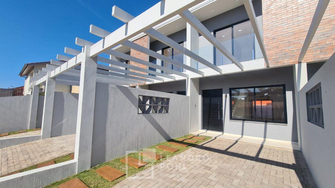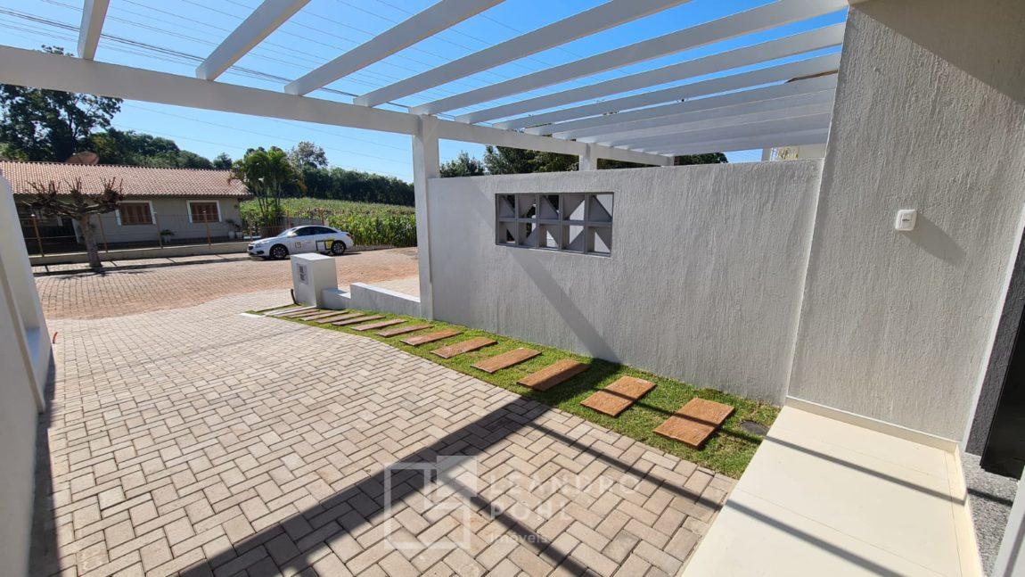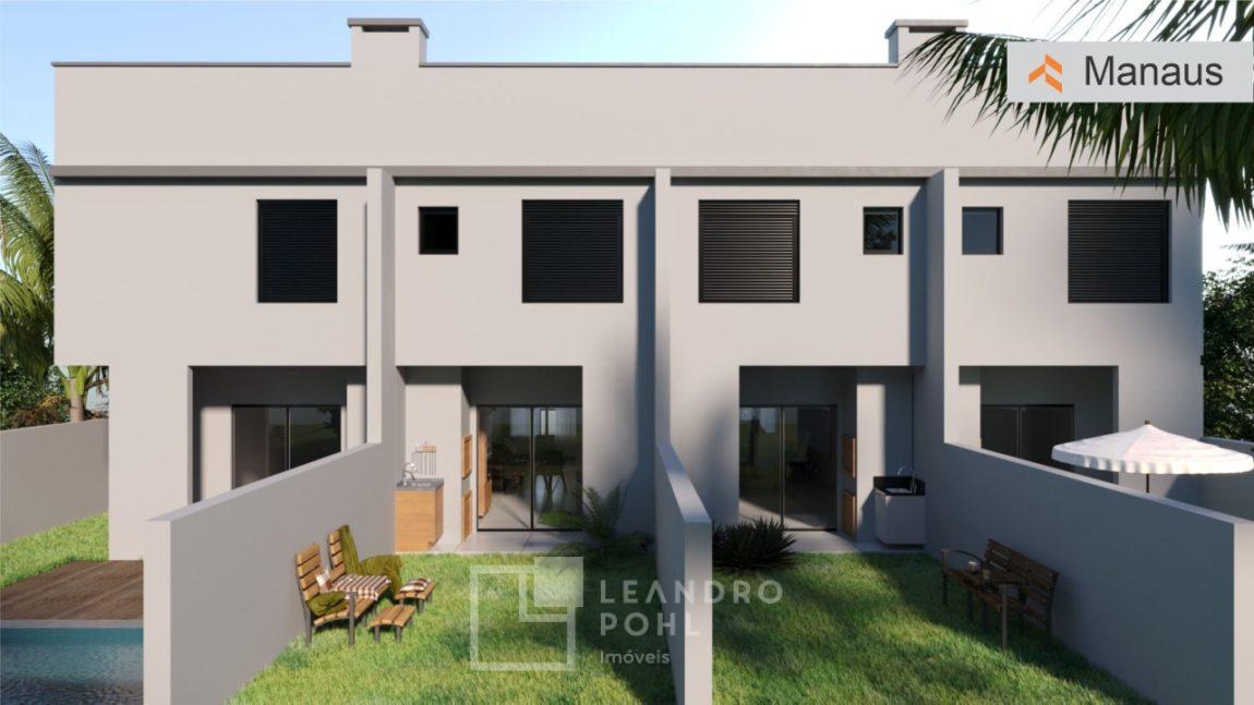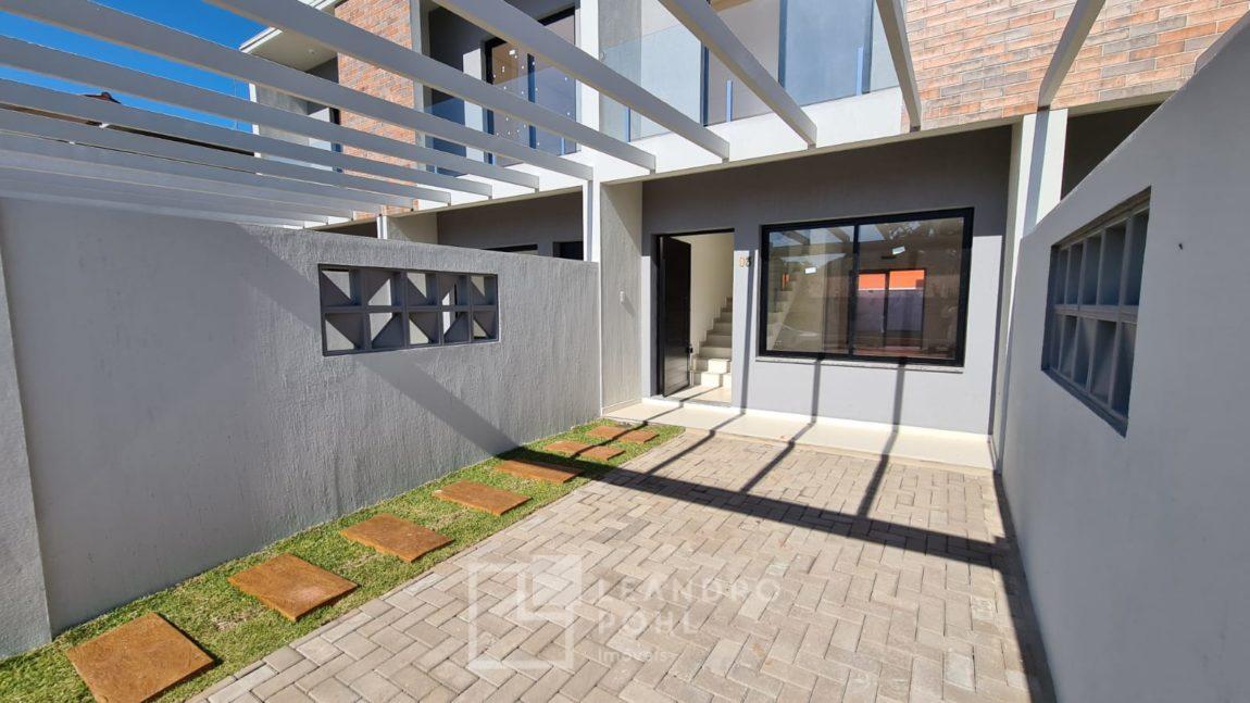 - Sobrados de 02 suítes, salas e cozinha integrados, lavabo, pátio, 2 vagas de garagem, pergolado descoberto (sem cobertura),