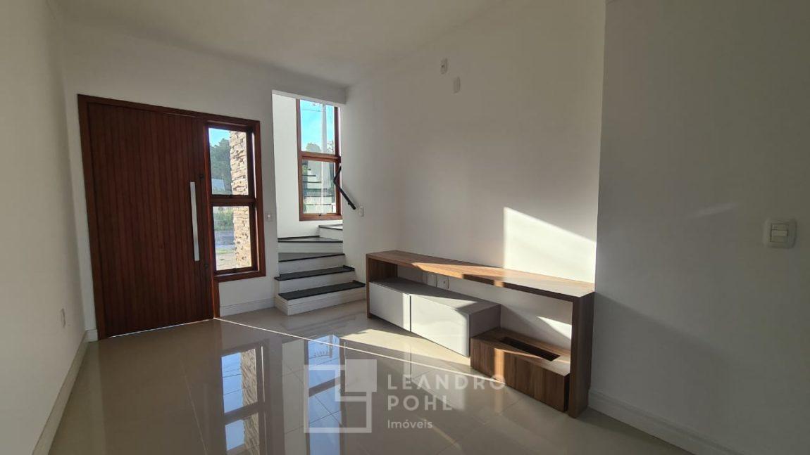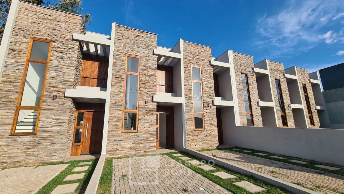 Sobrado novo, semi-mobiliado, pronto para morar, 2 suítes, com acabamento diferenciado, fachada em pedra natural, amplo pátio nos fundos de 40 m² ( 4x10), bancadas em pedra natural (banheiros e lavabo), ripado de madeira na fachada integrado as esquadrias, piso porcelanato, churrasqueira, lavabo,