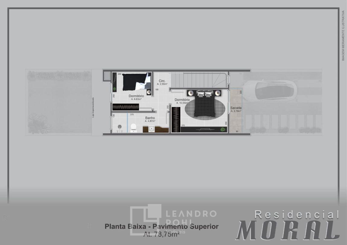 ● Sobrado Nº 02 e Nº 03 : Área de 78,75 m², composto de 02 dormitórios (um
