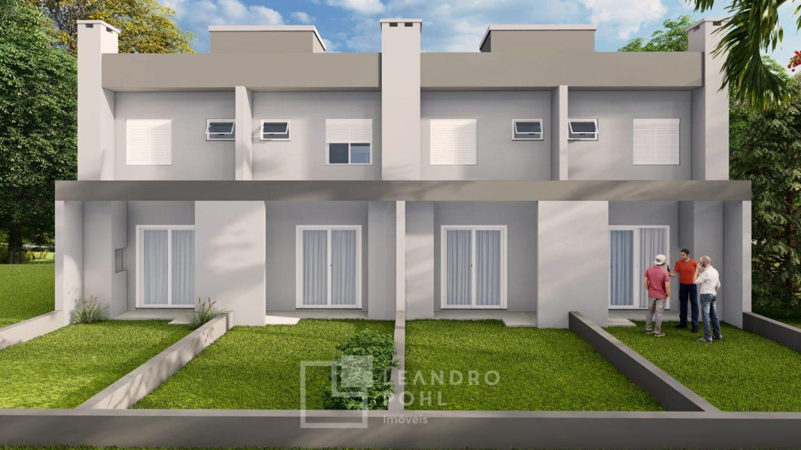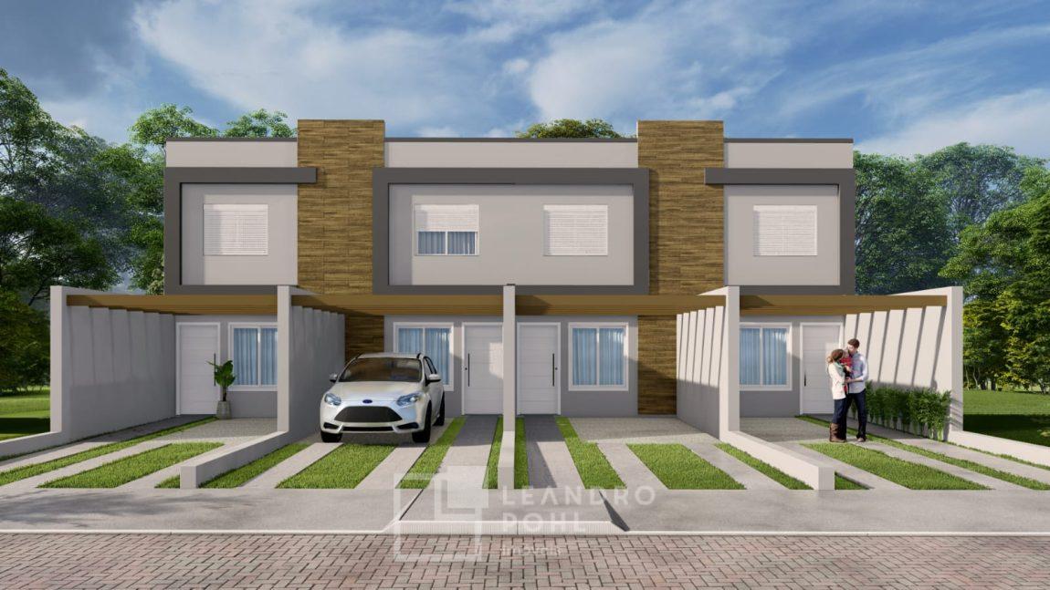 Sobrados de 2 dormitórios, 1 banheiro, 1 lavabo, sala, cozinha, área de Serviço, churrasqueira, pergolado sem cobertura, aberturas em alumínio branco e portas internas laqueadas.