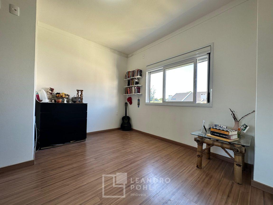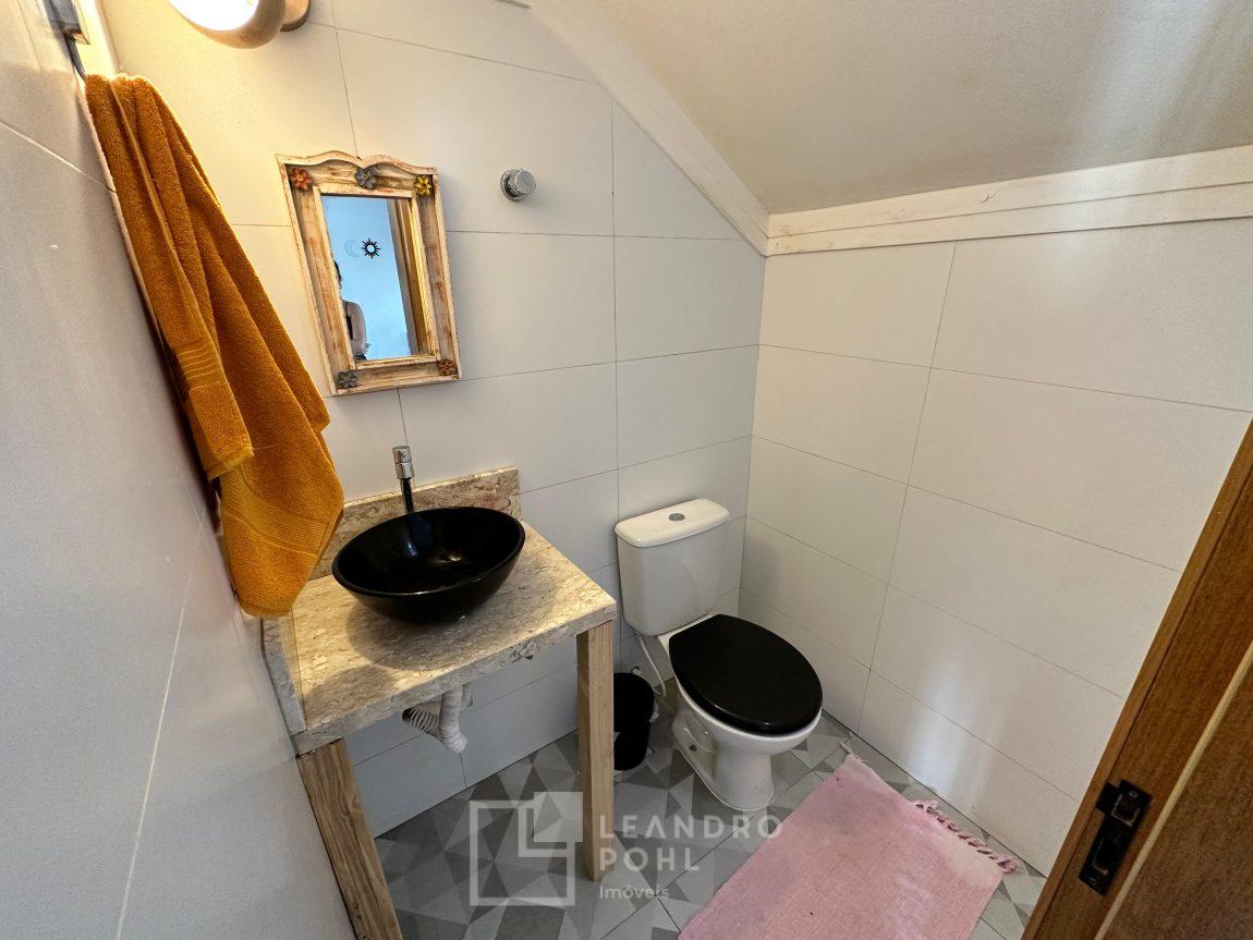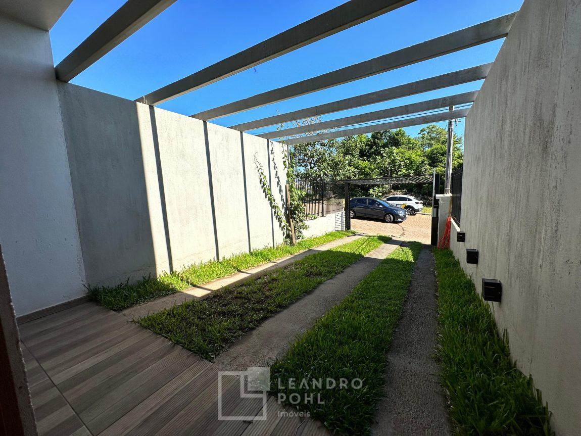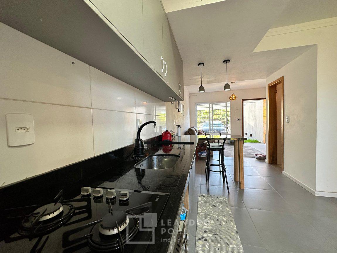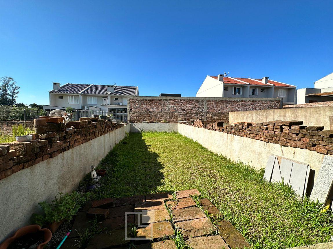 Sobrado 2 dormitórios, permanece móvel da cozinha e banheiro, cama e armários dos quartos, cozinha conjugada com a sala, lavabo, área de serviço, espera para lareira ou churrasqueira, gás central, pátio amplo nos fundos, pergolado em cimento na frente, orientação solar norte, cercado, portão eletrônico, piso porcelanato na área social e laminado nos dormitórios, IPTU 2025 pago, localização passível de enchente.