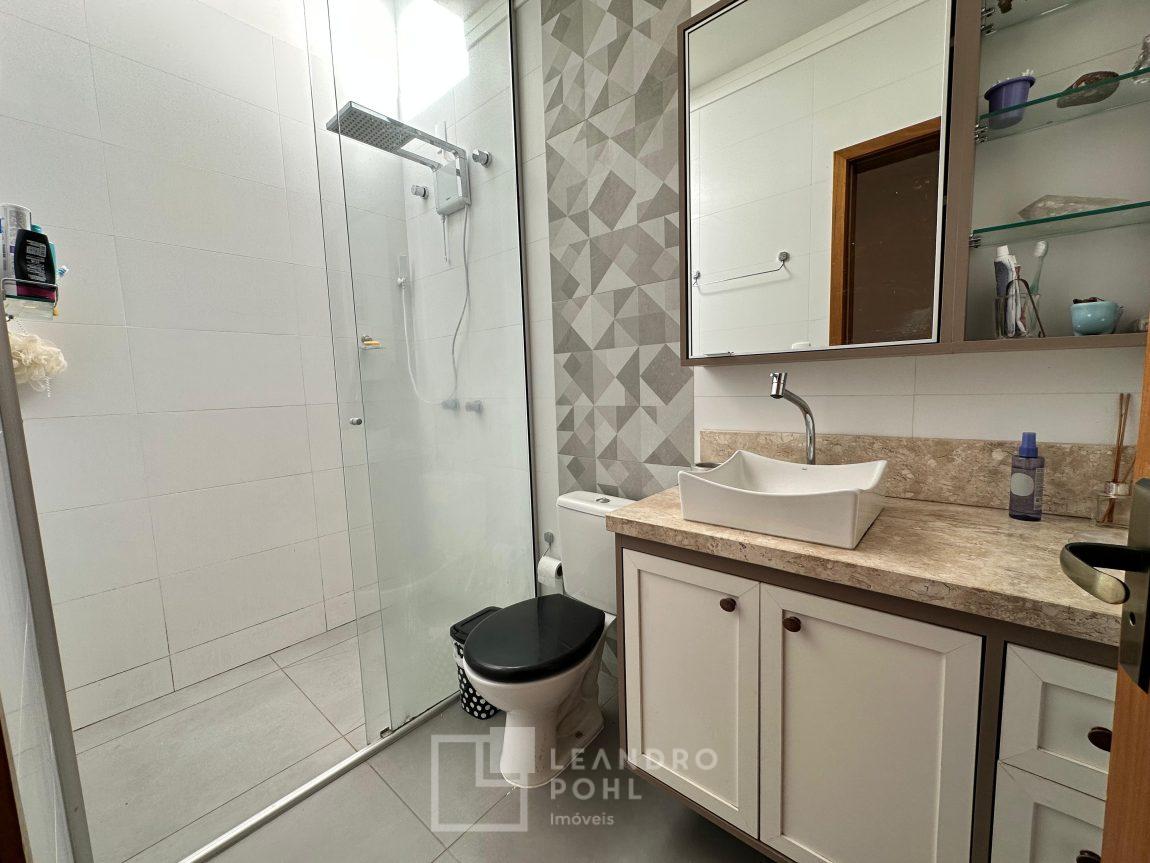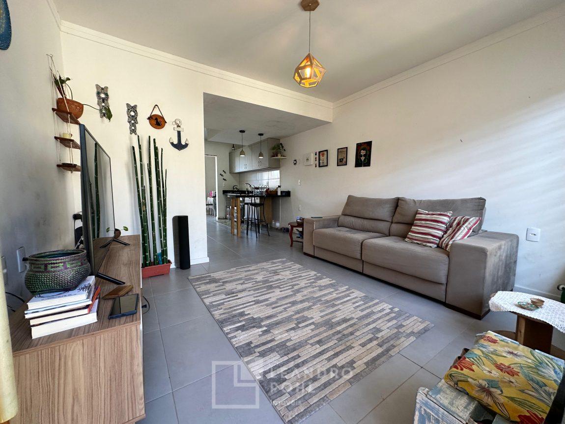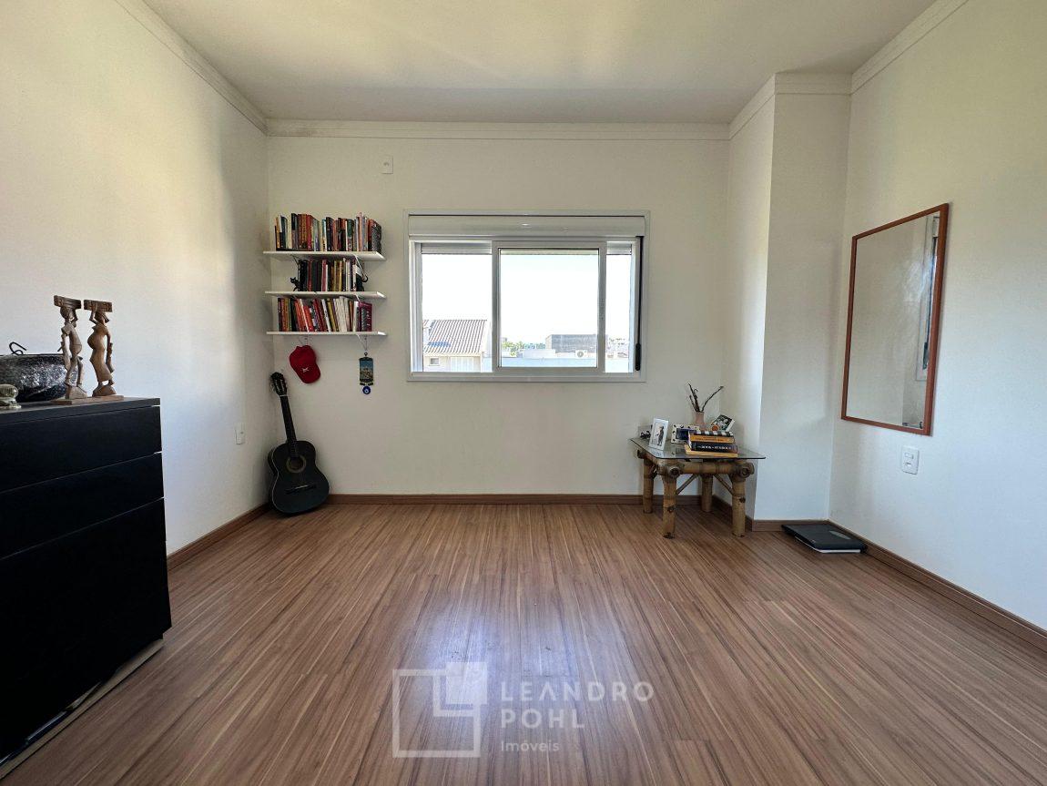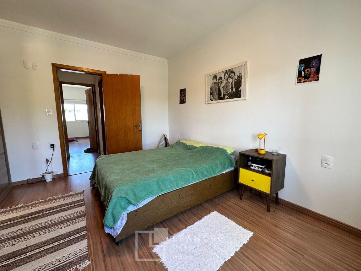 Sobrado 2 dormitórios, permanece móvel da cozinha e banheiro, cama e armários dos quartos, cozinha conjugada com a sala, lavabo, área de serviço, espera para lareira ou churrasqueira, gás central, pátio amplo nos fundos, pergolado em cimento na frente, orientação solar norte, cercado, portão eletrônico, piso porcelanato na área social e laminado nos dormitórios, IPTU 2025 pago, localização passível de enchente.