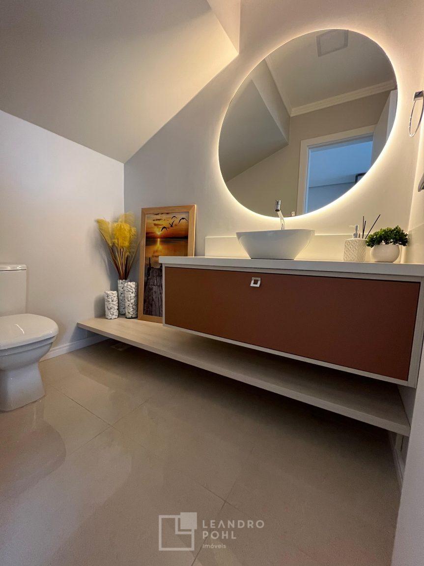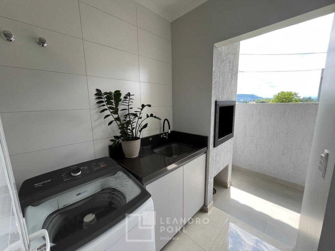 lavabo, churrasqueira, sala e cozinha integradas, pátio nos fundos (4,8 m x 12 m) para