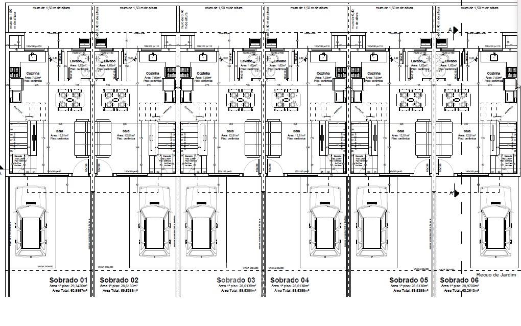 Sobrado 2 dormitórios em construção, 6 sobrados com aproximadamente 60m2, contendo 2 quartos, sala cozinha e área de serviço com churrasqueira, vaga de carro, murado nos fundos, e com vaga de estacionamento para carro a frente.