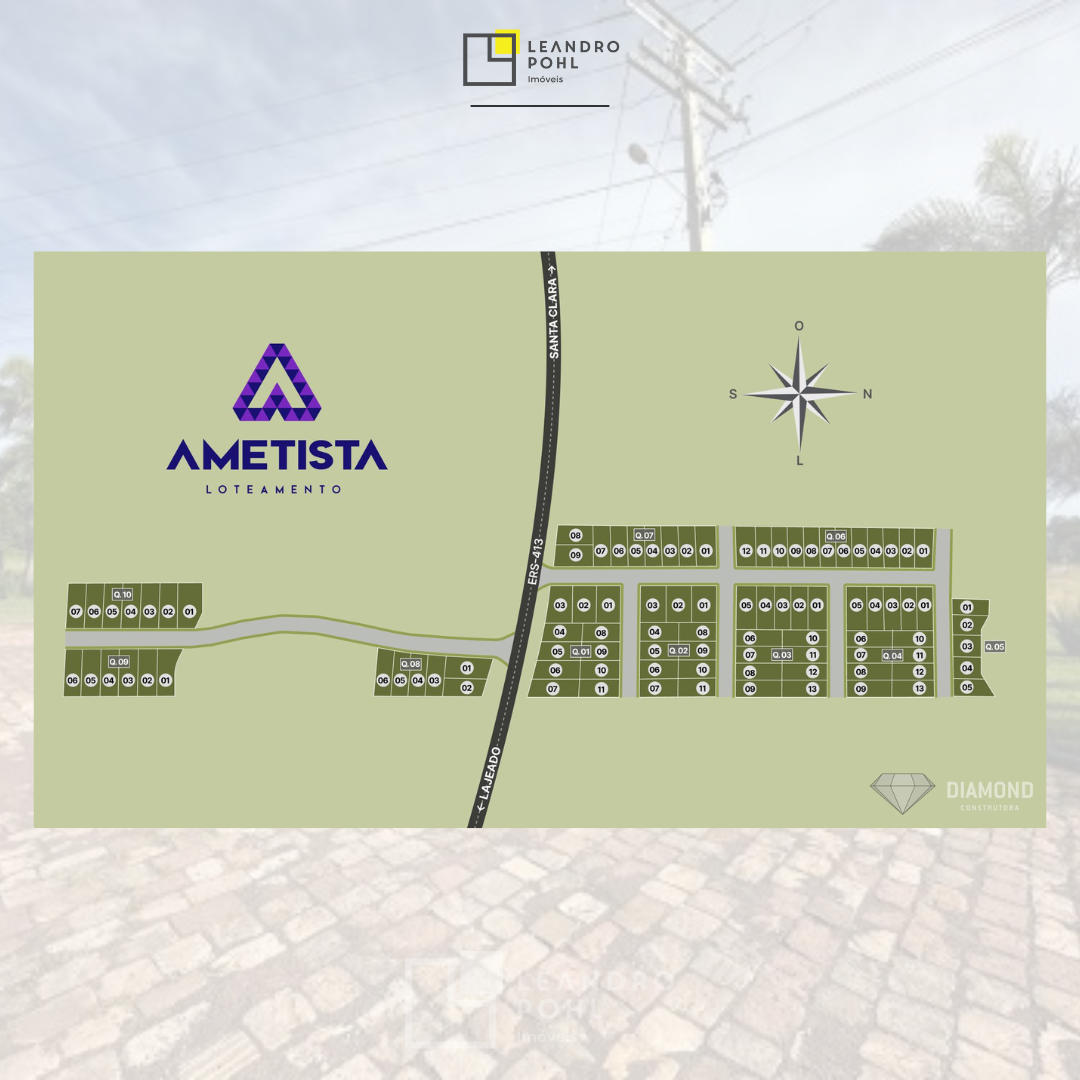 Aqui você pode construir seus sonhos com tranquilidade, Loteamento Ametista conta com 10 quadras, 93 terrenos residenciais localizado às margens da ERS-413 em direção a Santa Clara do Sul.