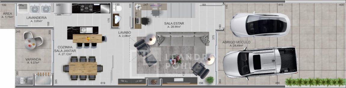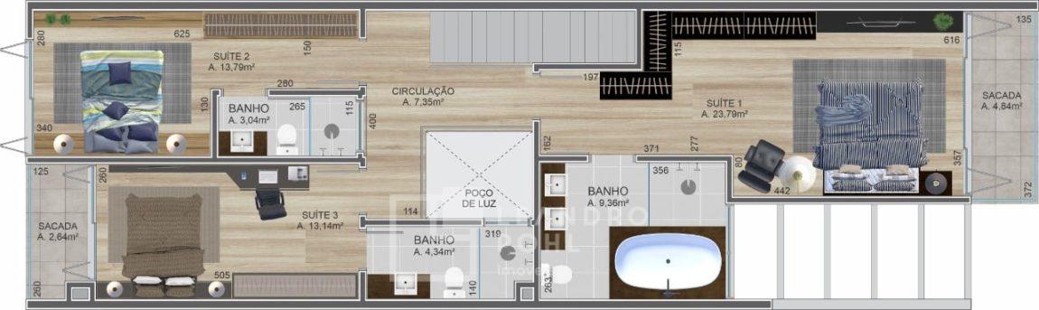 Em construção, com amplo pátio nos fundos medindo aproximadamente 42 m² e com espera para piscina, 3 suítes sendo uma master com sacada e closet, espera para banheira de hidromassagem, garagem para 2 carros lado a lado, lavabo.