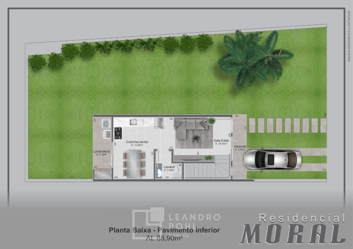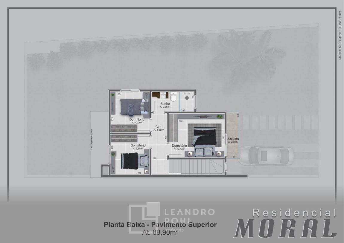 ● Sobrado Nº 04 : (esquina) Área de 88,90 m², composto de 03 dormitórios (um