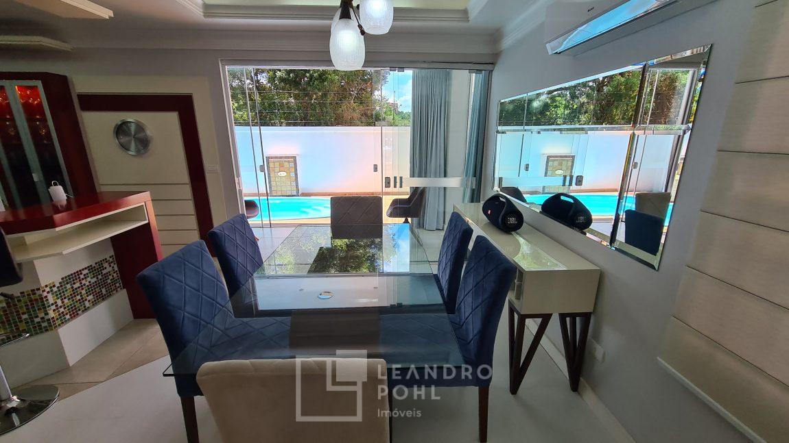 Semi mobiliado, permanecem; moveis planejados da cozinha, painel da sala, lavabo, lavanderia, área de churrasco externa, banheiros. splits, cortinas e iluminação embutida. Cerca elétrica e água quente solar, sistema de segurança com câmeras, esquadrias com tela de proteção (mosquito),,