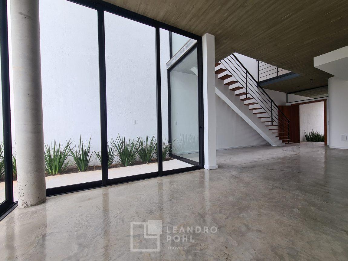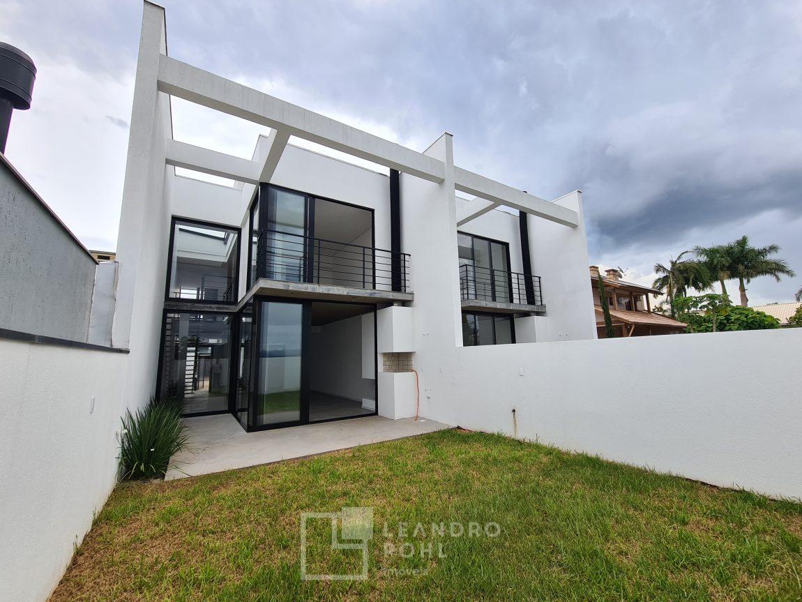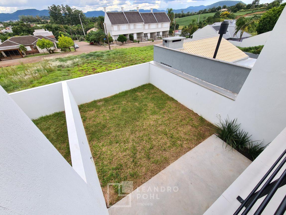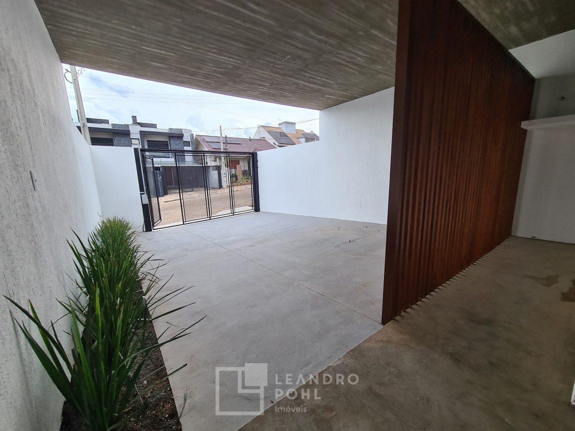 3 dormitórios, suíte, living integrado, lareira, espaço gourmet, espera de água quente, pátio nos fundos com espera para piscina, lavabo, vagas para 2 carros, murado e cercado.