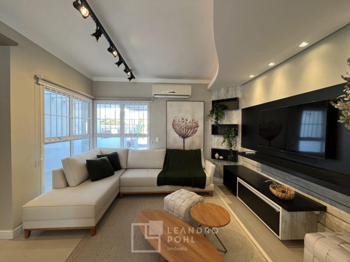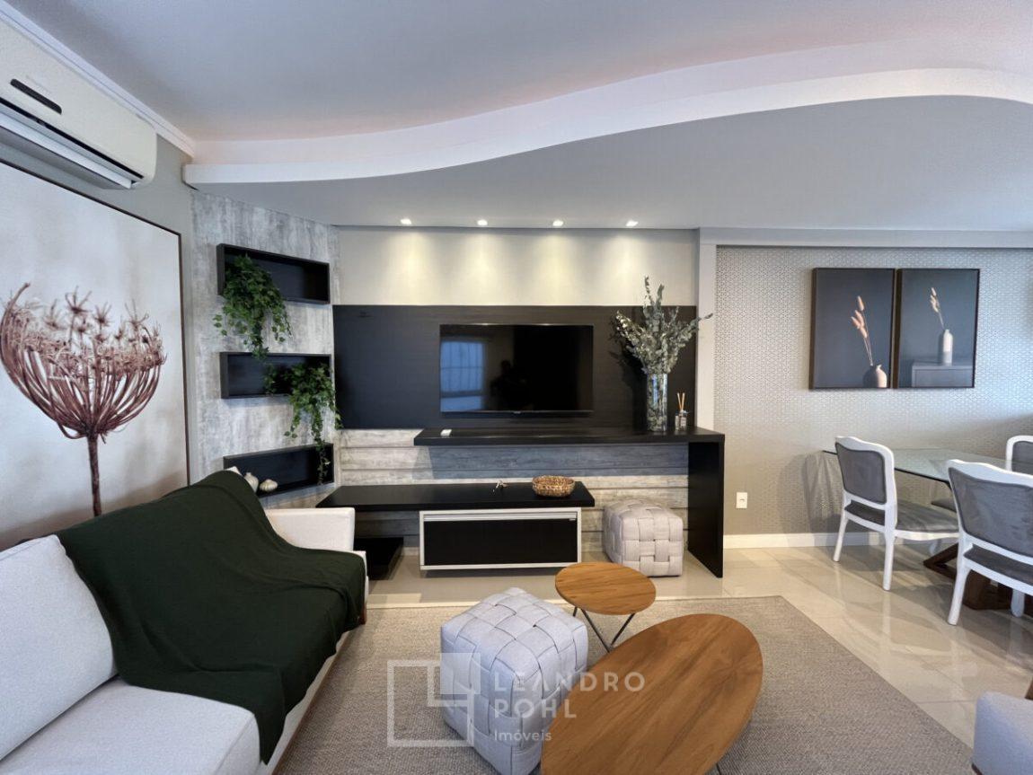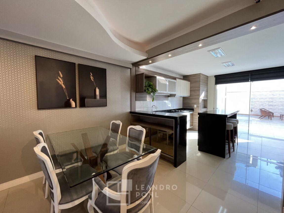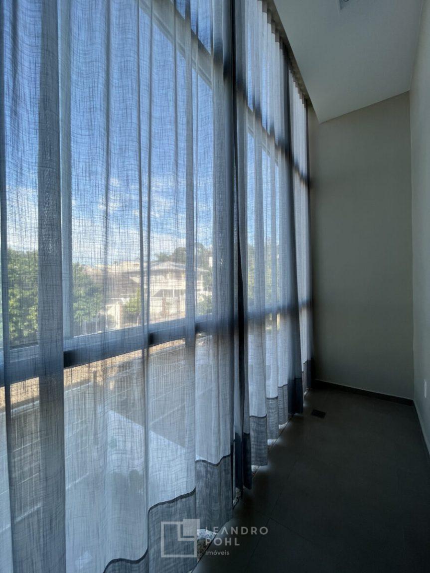 piso laminado, porcelanato, portão eletrônico, sacada fechada, sistema de Segurança, área de serviço separada, permanecem os móveis sob medida, ar condicionados, luminárias embutidas, móveis do pátio e cortinas, a tres quadras da univates.