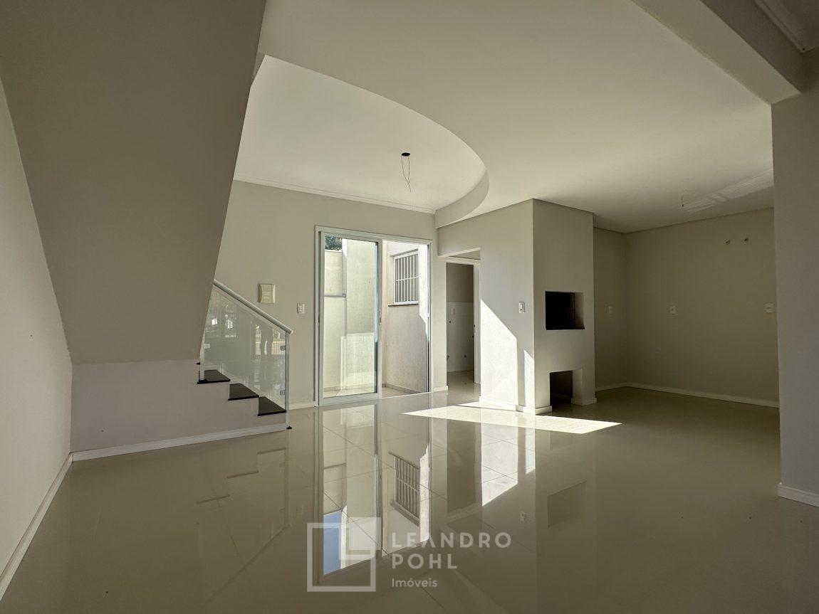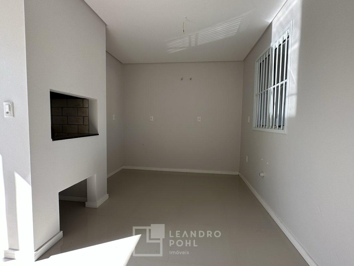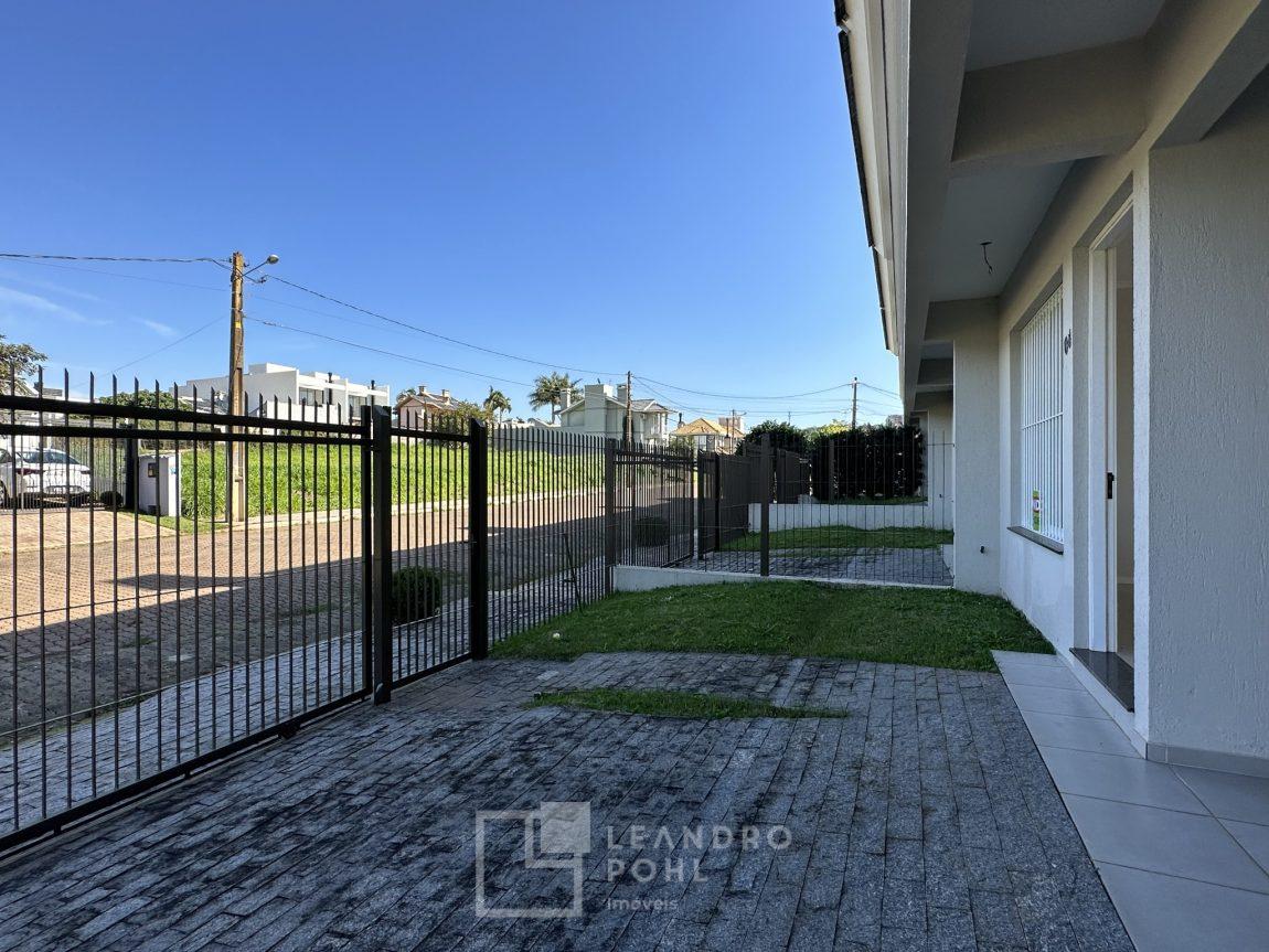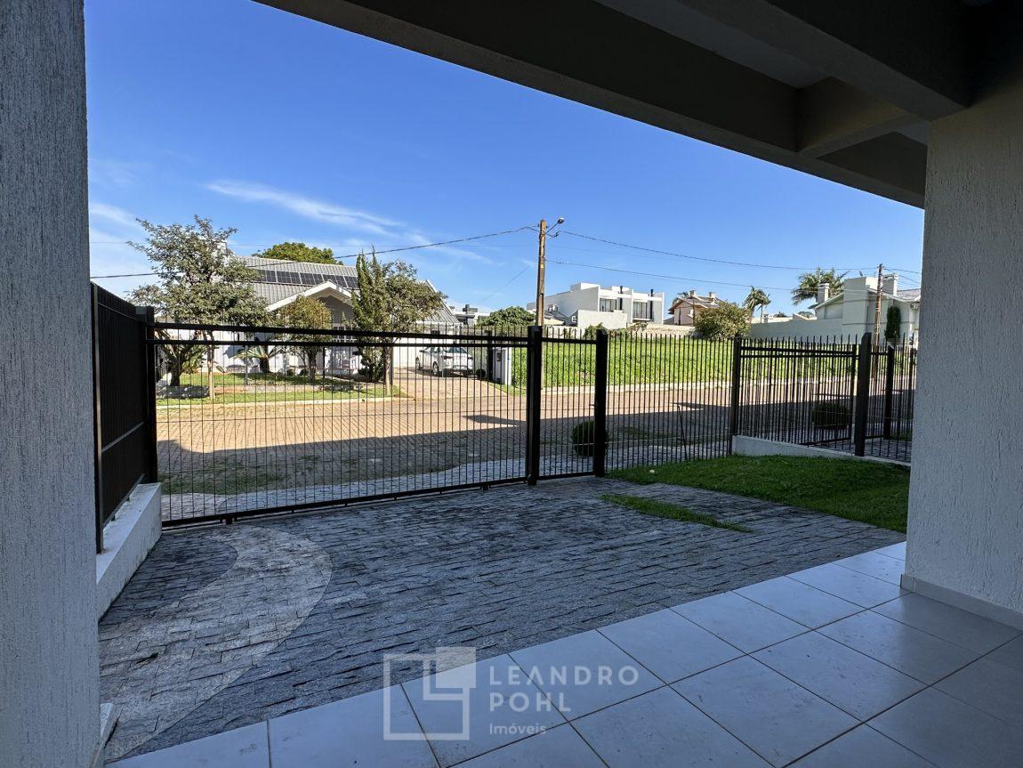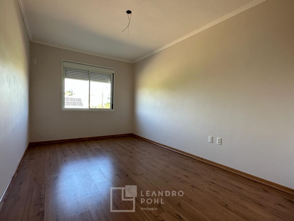 Novo, 3 dormitórios, suíte ampla com espaço para closet, piso laminado nos dormitórios, churrasqueira, área de serviço separada, espera para lareira, gás central, pátio na frente, murado e cercado, pronto para morar, aceita financiamento bancário, estuda terreno na troca e parcelamento direto.