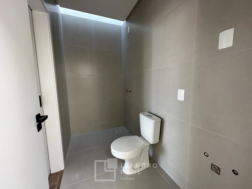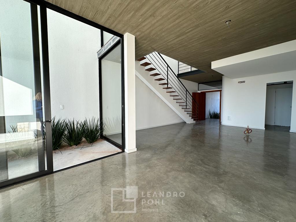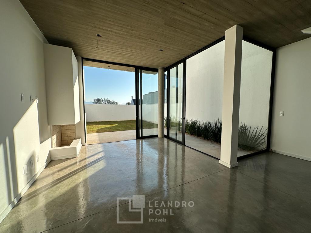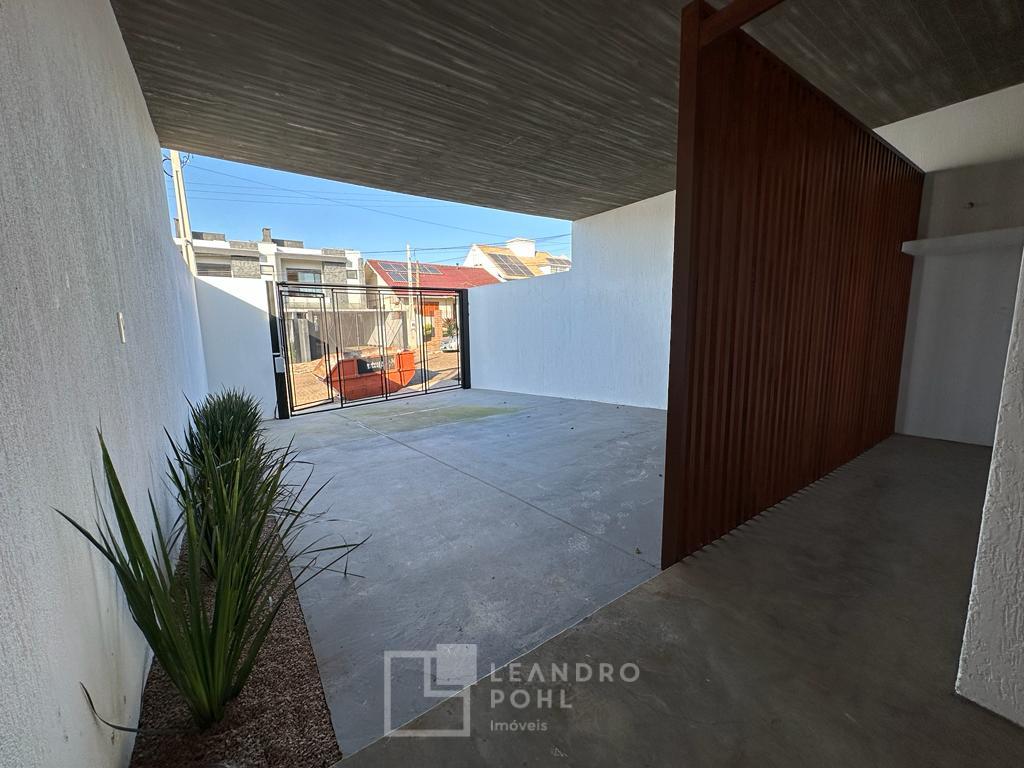 3 dormitórios, suíte, living integrado, lareira, espaço gourmet, espera de água quente, pátio nos fundos com espera para piscina, lavabo, vagas para 2 carros, murado e cercado.