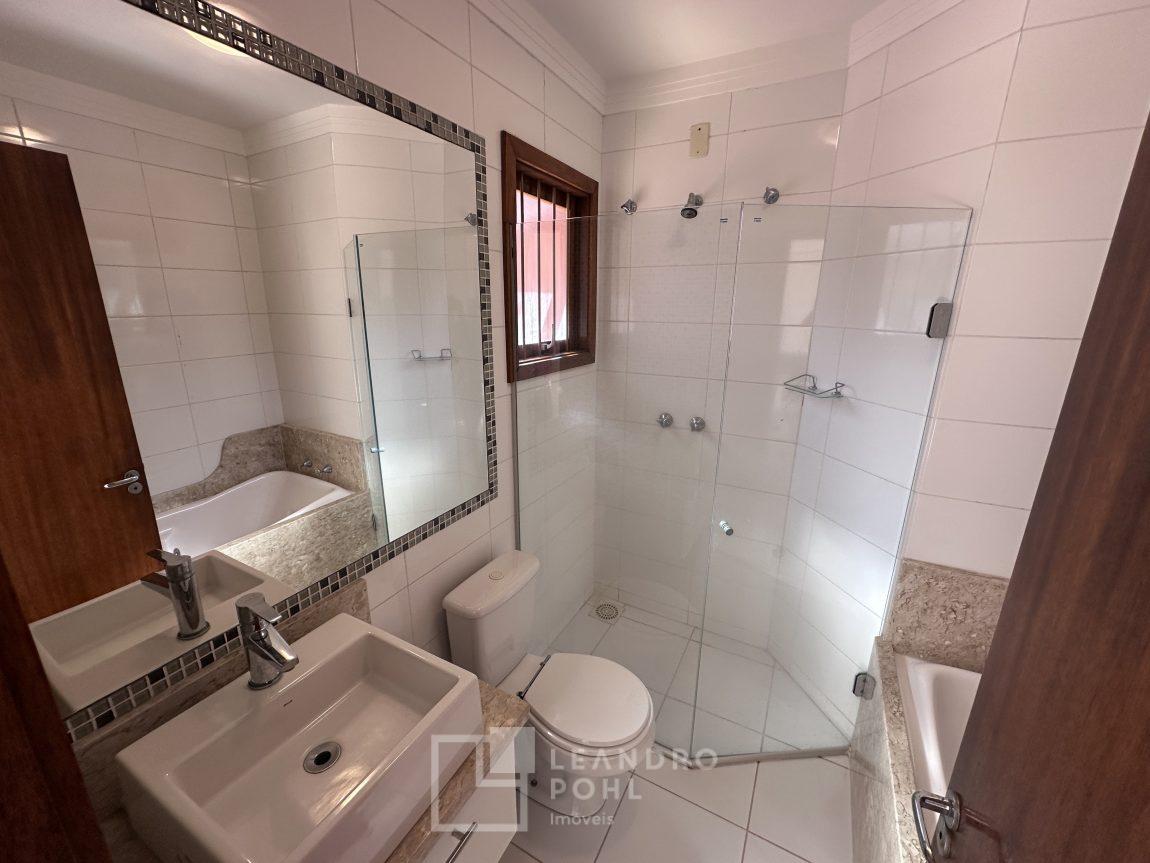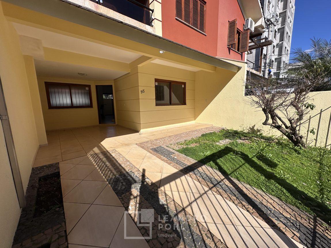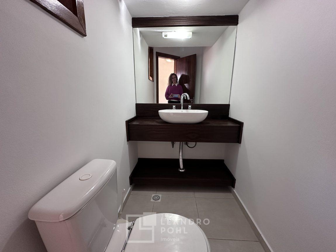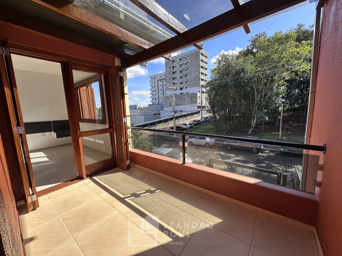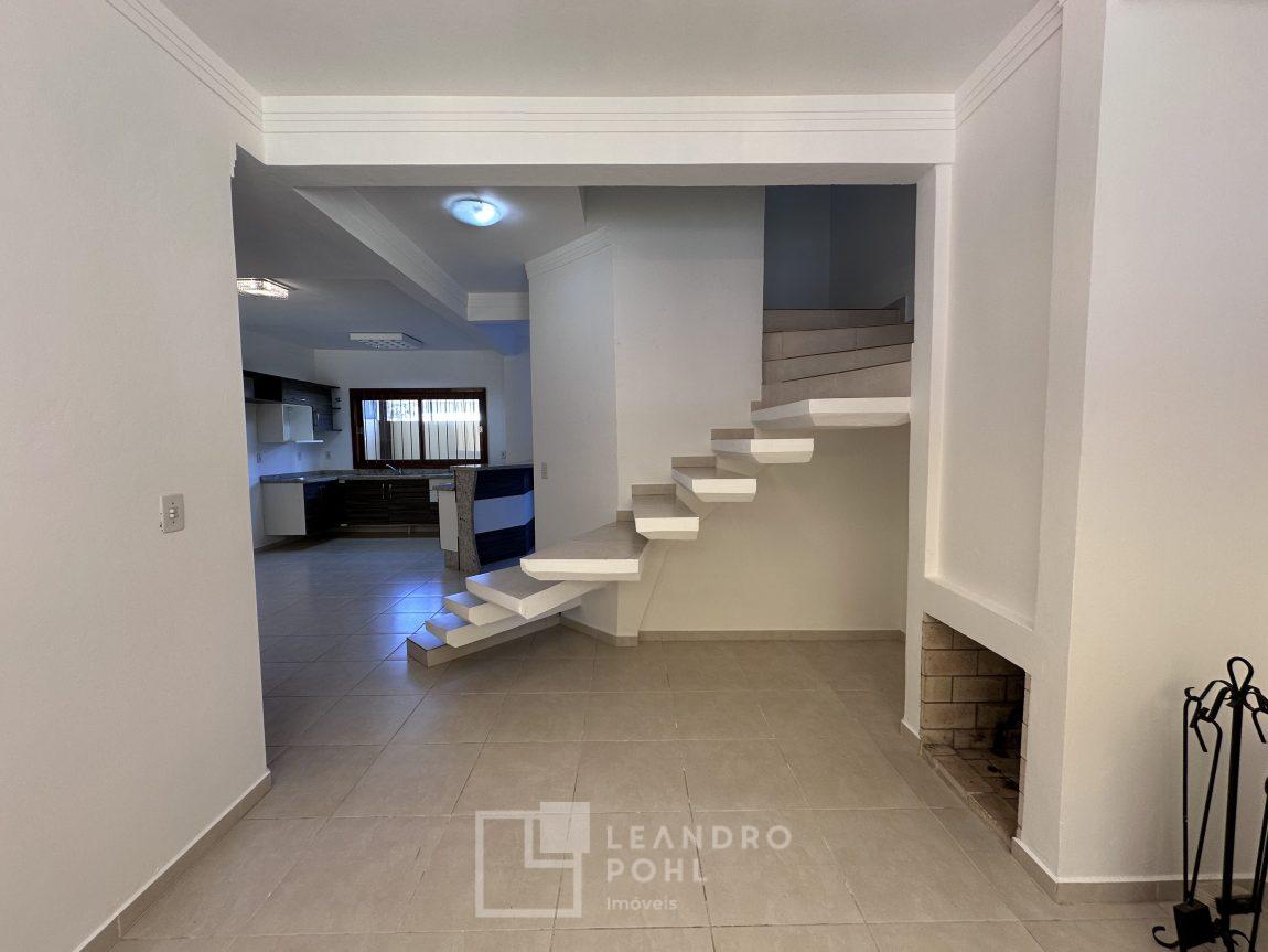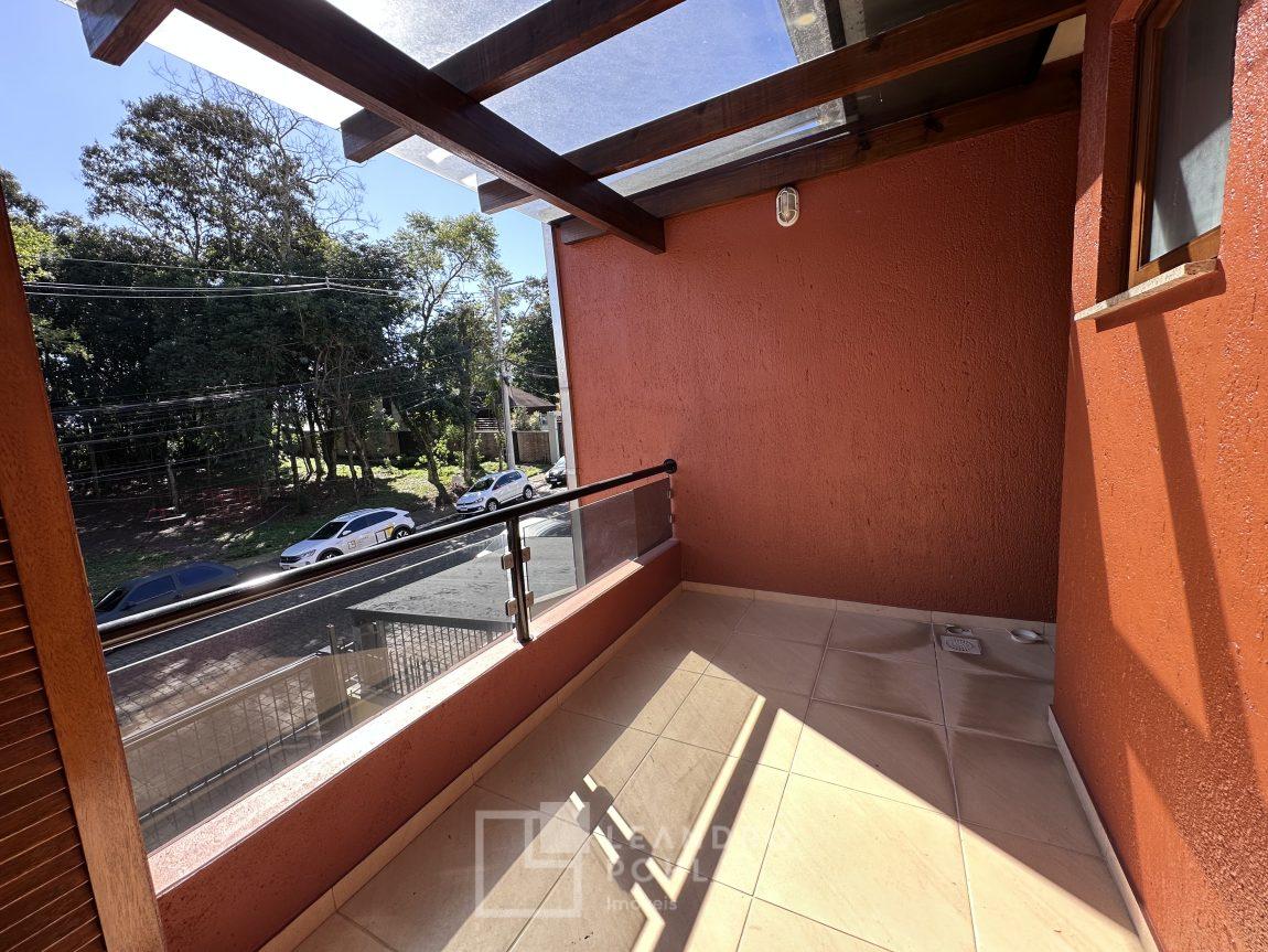Sobrado 3 dormitórios, uma suíte, banheira, e sacada, piso cerâmico, sala de estar e jantar e espaço gurmet, bem iluminado, aberturas internas e externas em madeira, churrasqueira, lareira, acabamento em gesso, pergolado, cercado e murado, semi-mobiliado, localizado em área nobre.