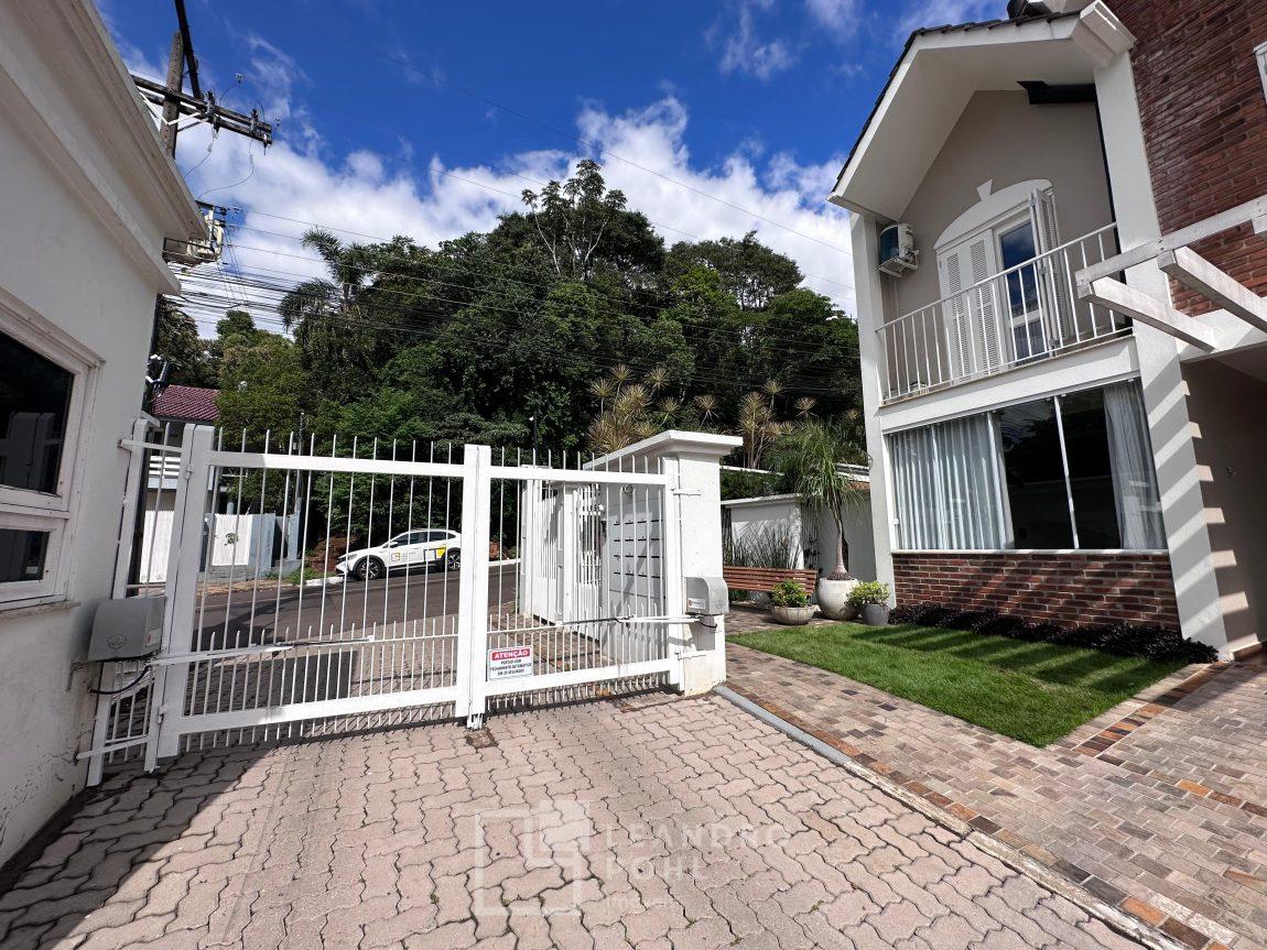 Sobrado MOBILIADO, 3 dormitórios, suíte, closet, sacada, lustres e persianas, junquer, gás central, split´s, metais e 2 box de vidro, sala de estar, sala de jantar, lavabo, banheiro social, churrasqueira, lavanderia separada, churrasqueira, espaço gourmet, piso porcelanato, garagem coberta para um carro e uma vaga em frente ao sobrado.