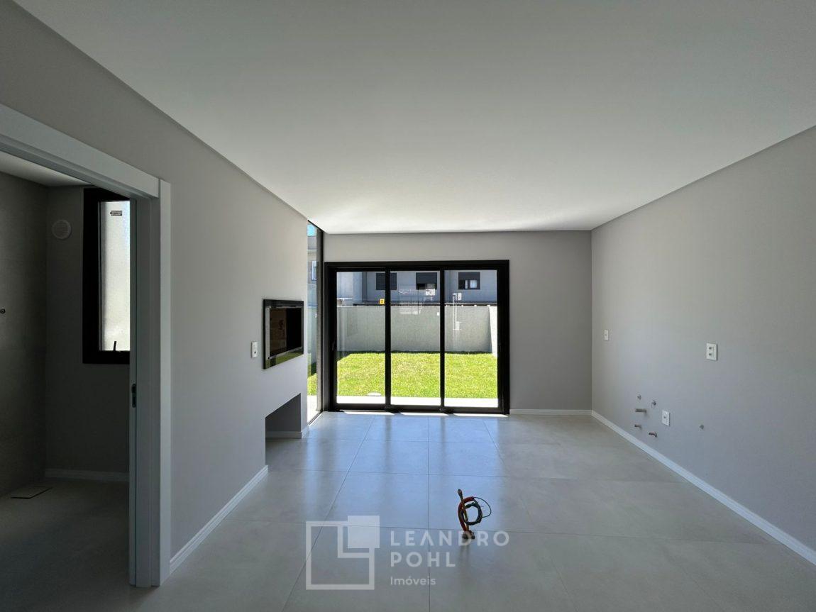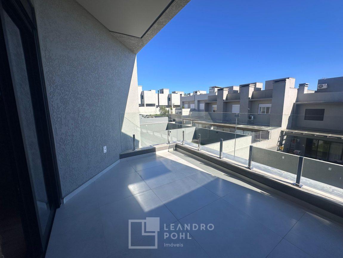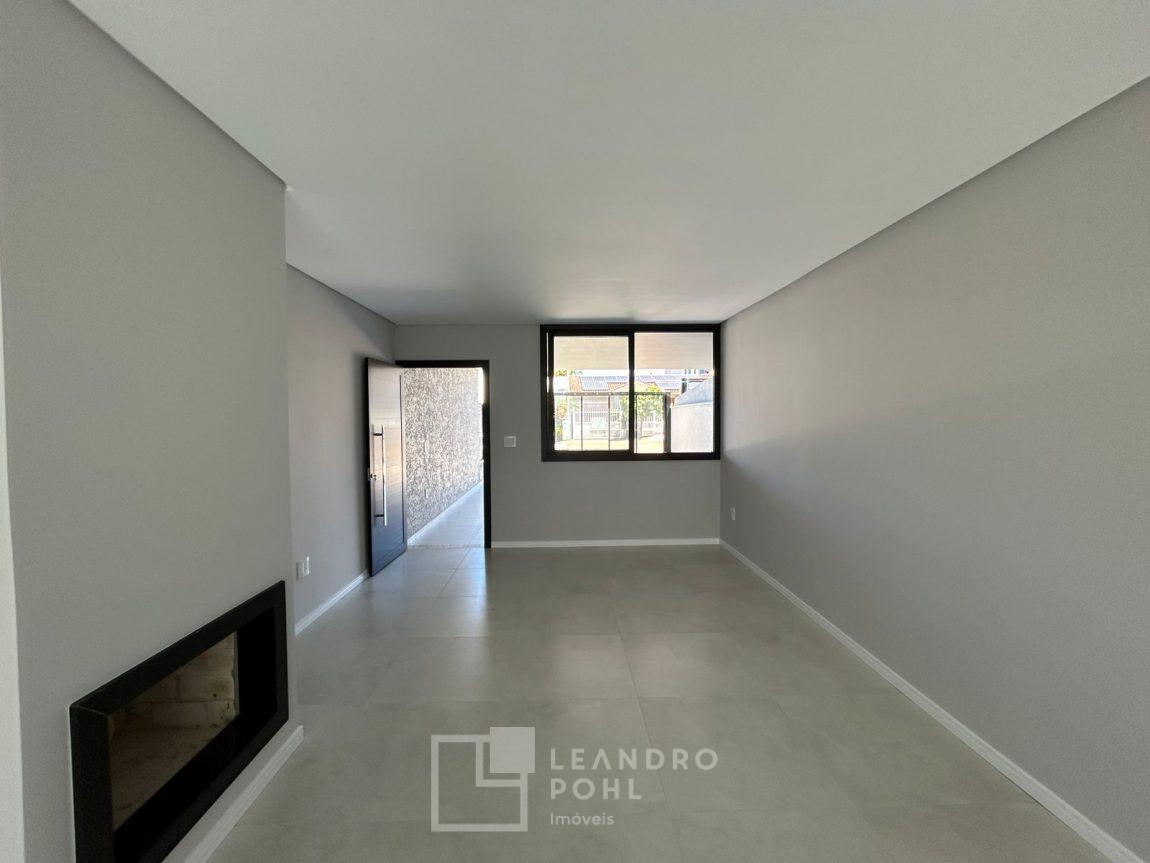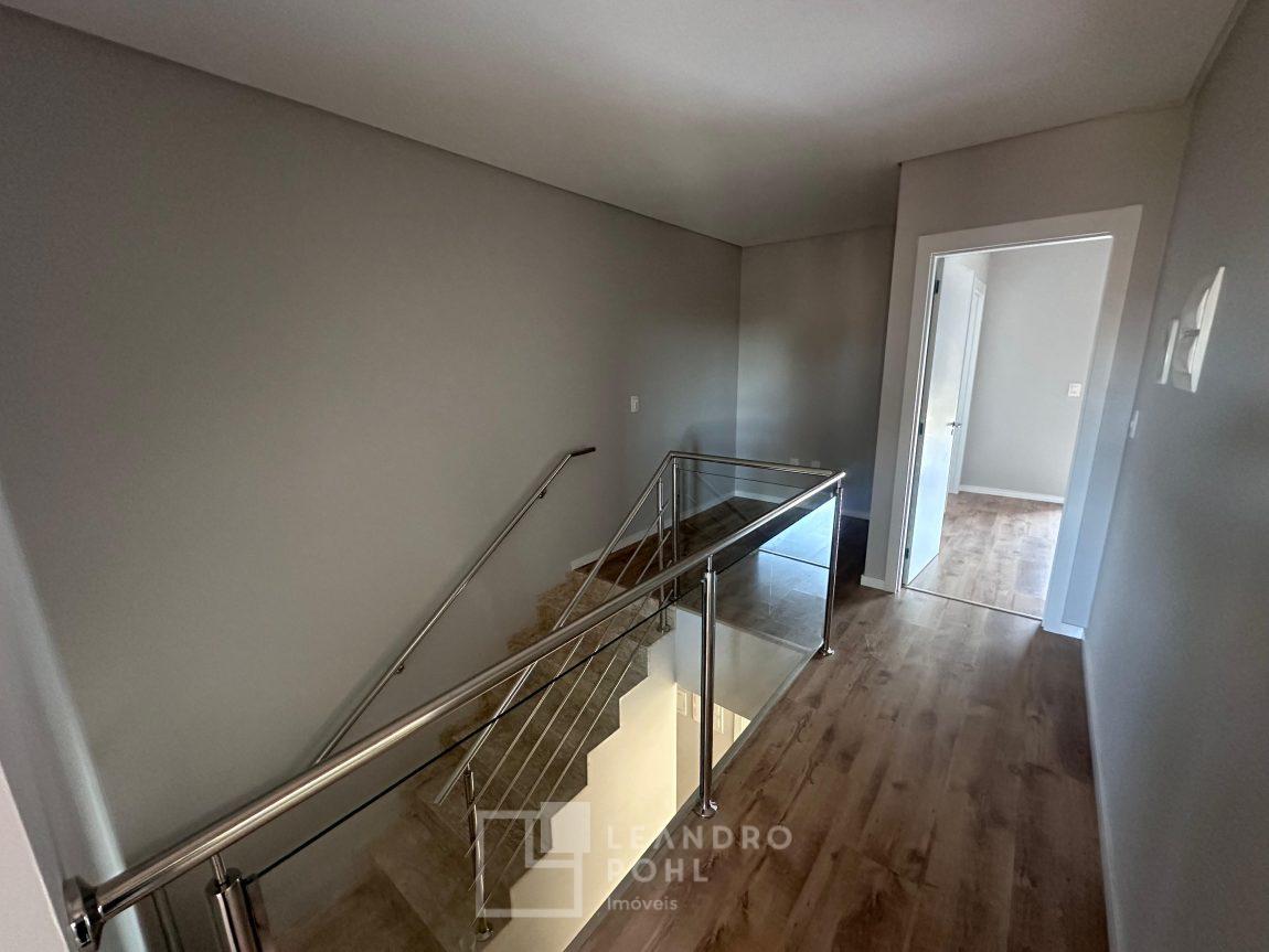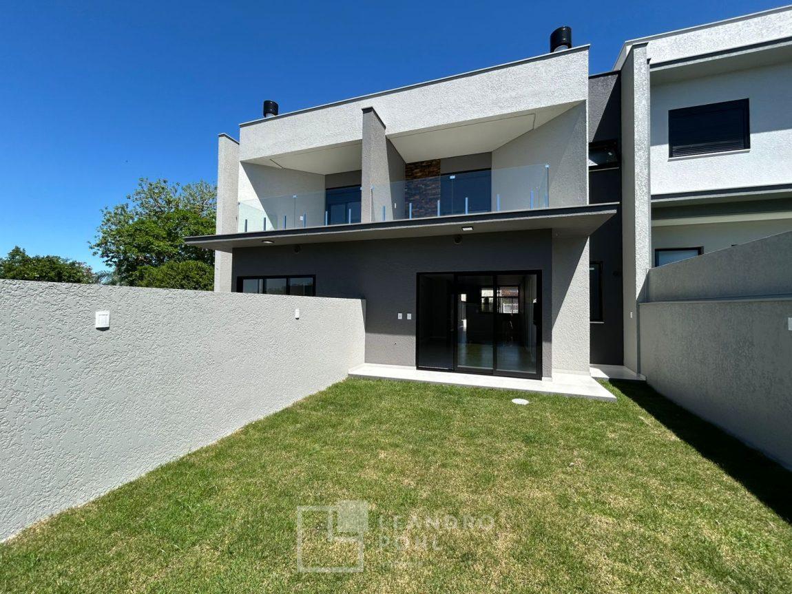 Sobrado de 3 dormitórios com suíte e sacada, living amplo, pátio frente e fundos, despensa, área se serviço separada, espera para split, espera para agua quente, calçada em basalto, lavabo, cercado e murado com vaga para dois carros, novo.
