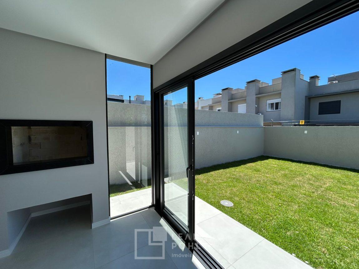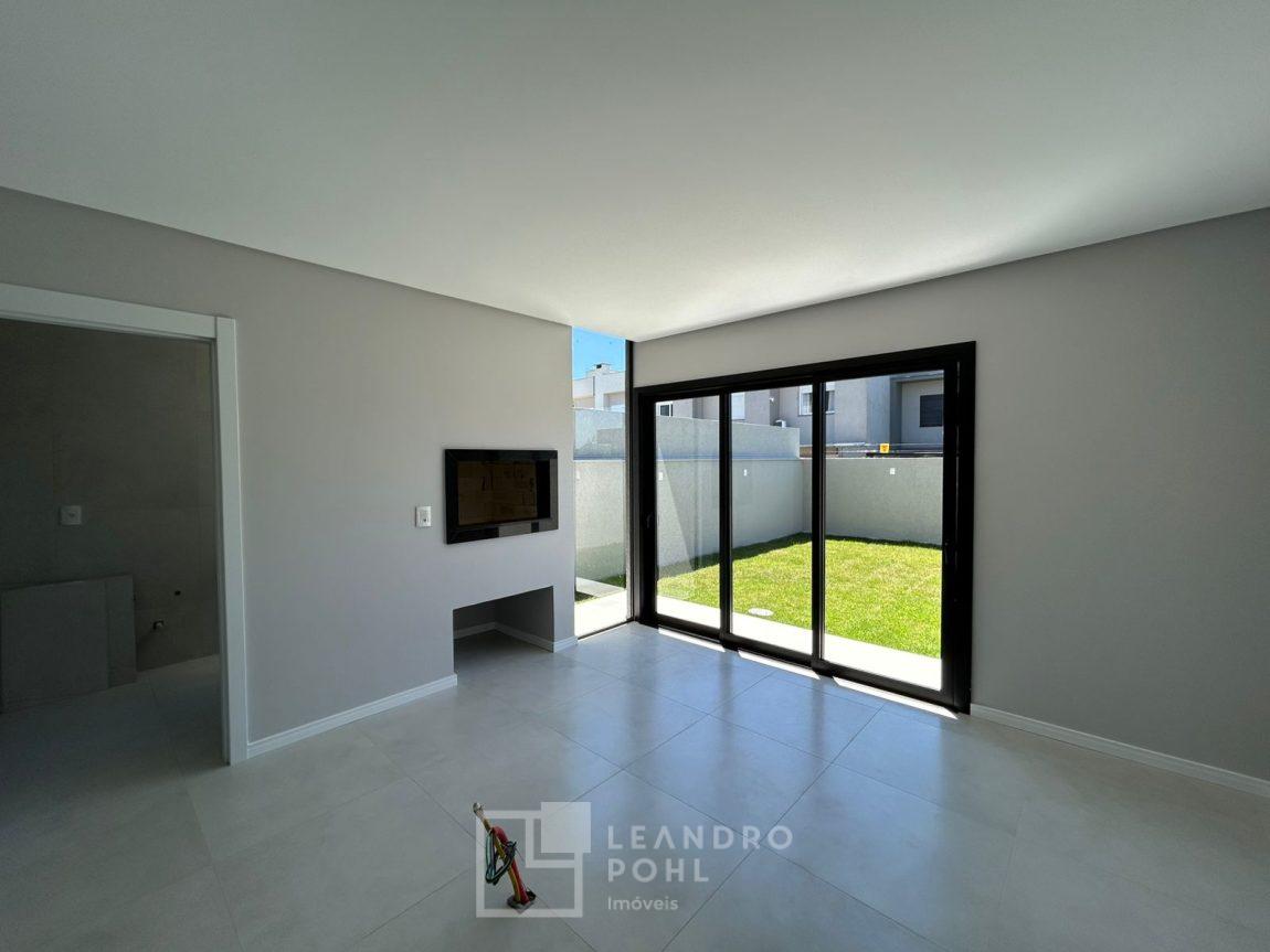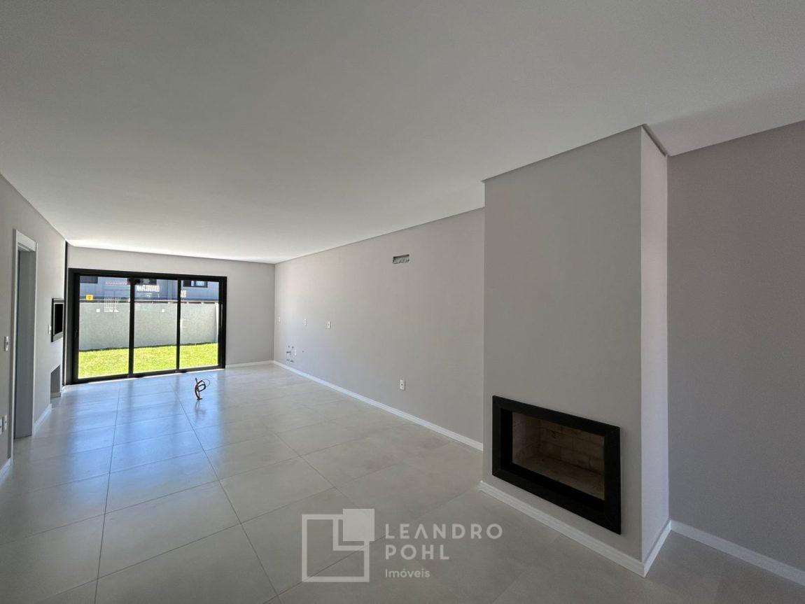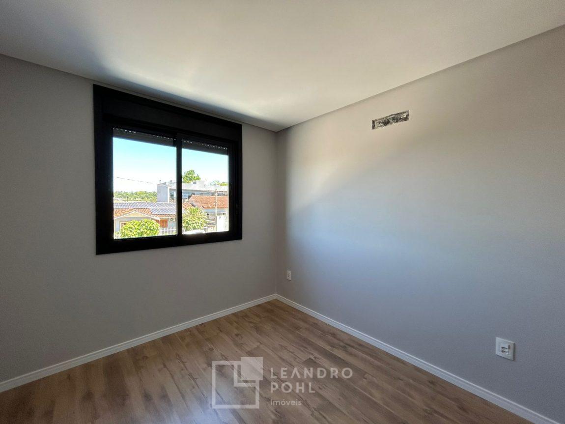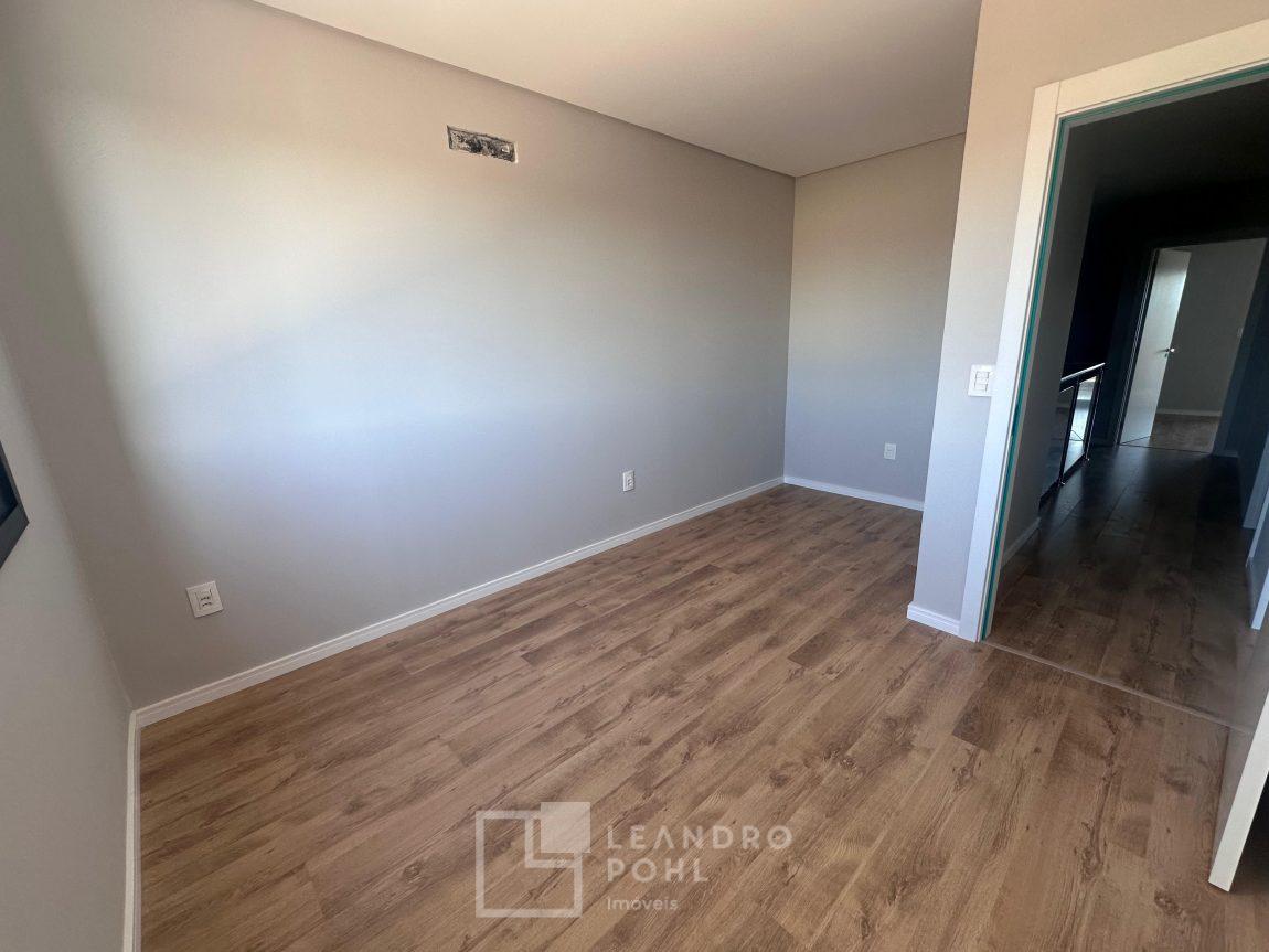 Sobrado de 3 dormitórios com suíte e sacada, living amplo, pátio frente e fundos, despensa, área se serviço separada, espera para split, espera para agua quente, calçada em basalto, lavabo, cercado e murado com vaga para dois carros, novo.