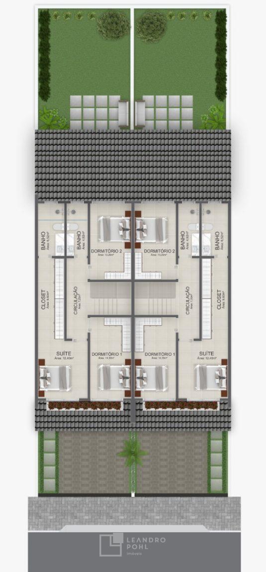 Sobrados com 03 dormitórios sendo 01 suíte com CLOSET.