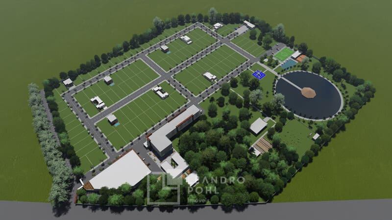 São 123 terrenos destinados à construção de casas, com lotes de 360m² a 1236,48m²