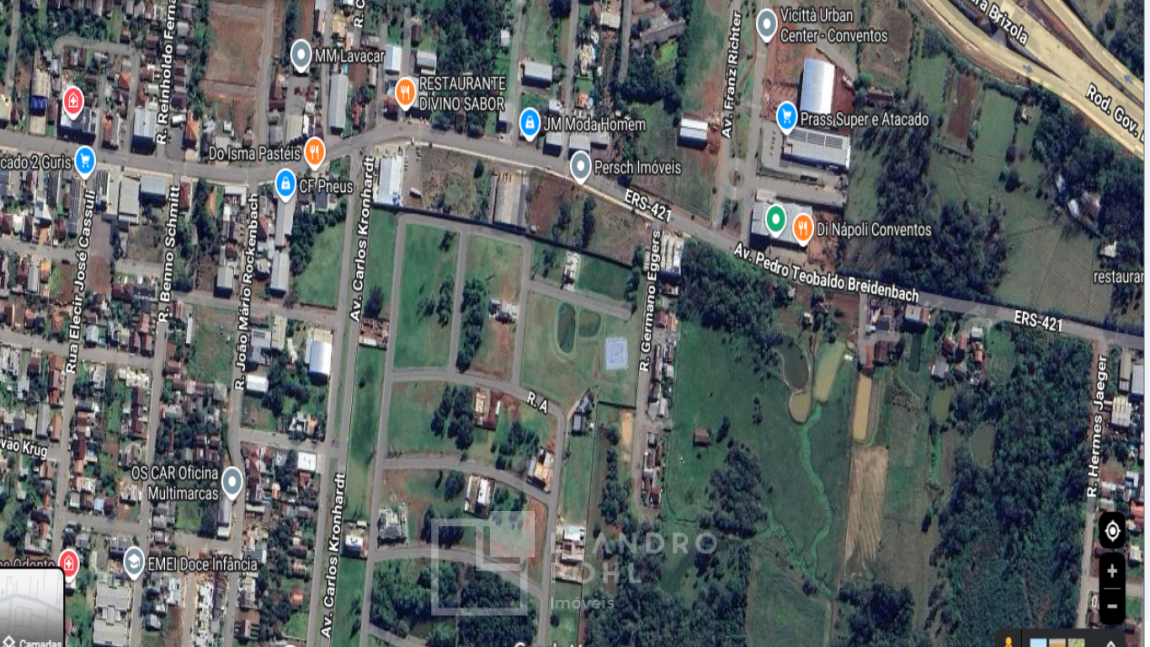 Terreno comercial de frente para principal rua do Bairro Conventos ,principal eixo comercial e de serviços do bairro Conventos, em Lajeado/RS. Considerada uma das vias que mais cresce e movimenta o bairro, a rua abriga bancos comércios, empresas, escolas e residências.